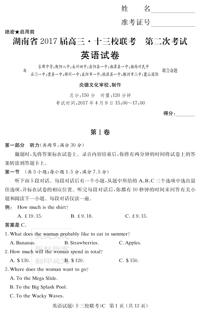 上一篇:【文綜】炎德英才大聯(lián)考2017長(zhǎng)郡中學(xué)高三8次月考(十三校聯(lián)考二)