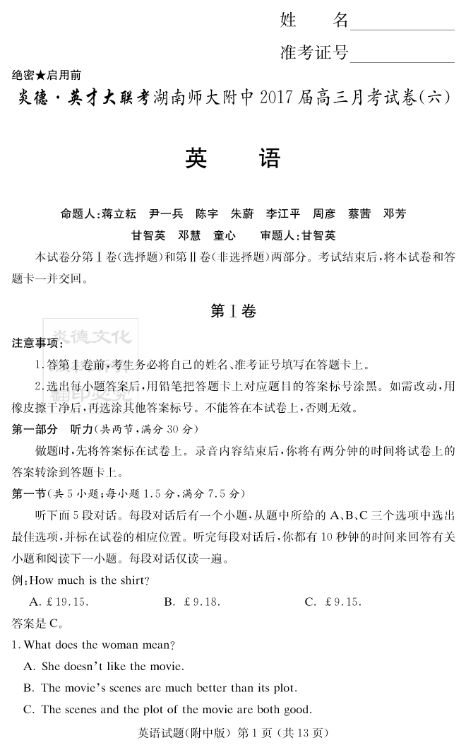上一篇:【文綜】炎德英才大聯(lián)考2017師大附中高三6次月考