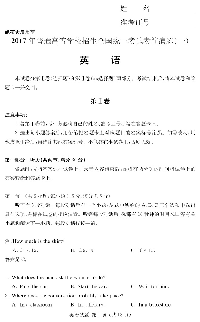 下一篇:【語文】2017年普通高等學校招生全國統(tǒng)一考試考前演練(一)