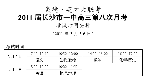上一篇:炎德英才大聯(lián)考長沙市一中2011屆高三第七次月考考試時間