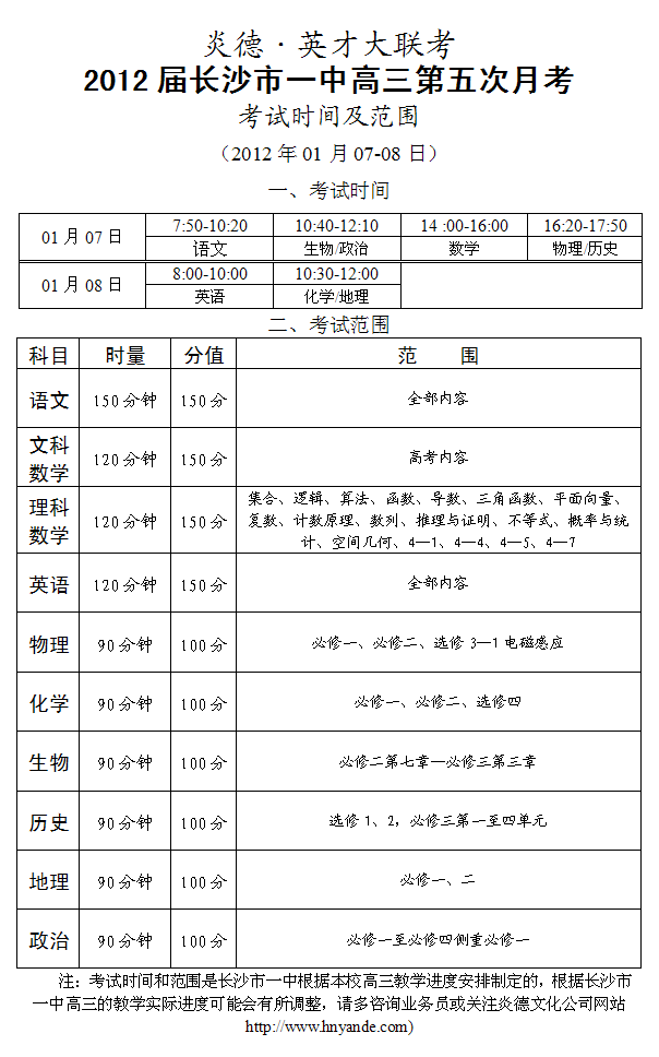 來源:炎德文化點擊:2012-01-05 08:30:44收藏本文當前位置:考試范圍 長沙一中 高三 正文