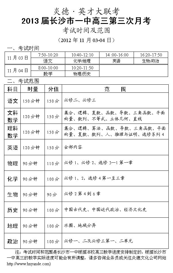 來源:炎德文化點擊:2012-10-27 14:52:00收藏本文當前位置:考試范圍 長沙一中 高三 正文