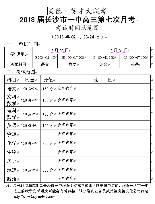 來源:炎德文化點擊:2013-02-19 17:30:43收藏本文當前位置:考試范圍 長沙一中 高三 正文