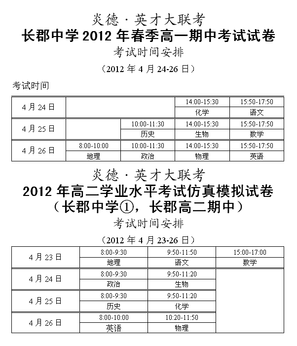 上一篇:2012春季長郡中學高一期中考試時間及范圍