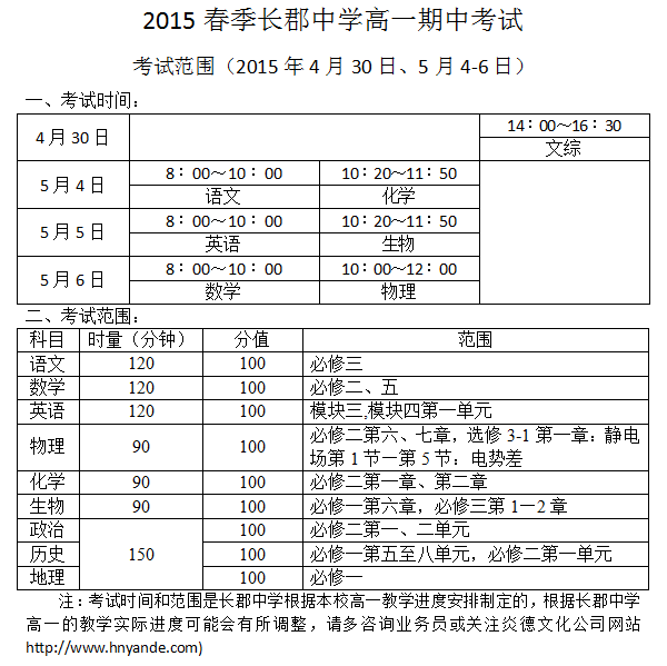 下一篇:2015年春季長(zhǎng)郡中學(xué)高一期末考試考試范圍(2015年7月8-10日)