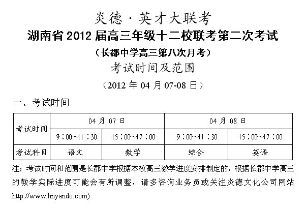 上一篇:炎德英才大聯(lián)考長郡中學2012屆高三第七次月考(湖南省2012屆十二校聯(lián)考一)考試時間和范