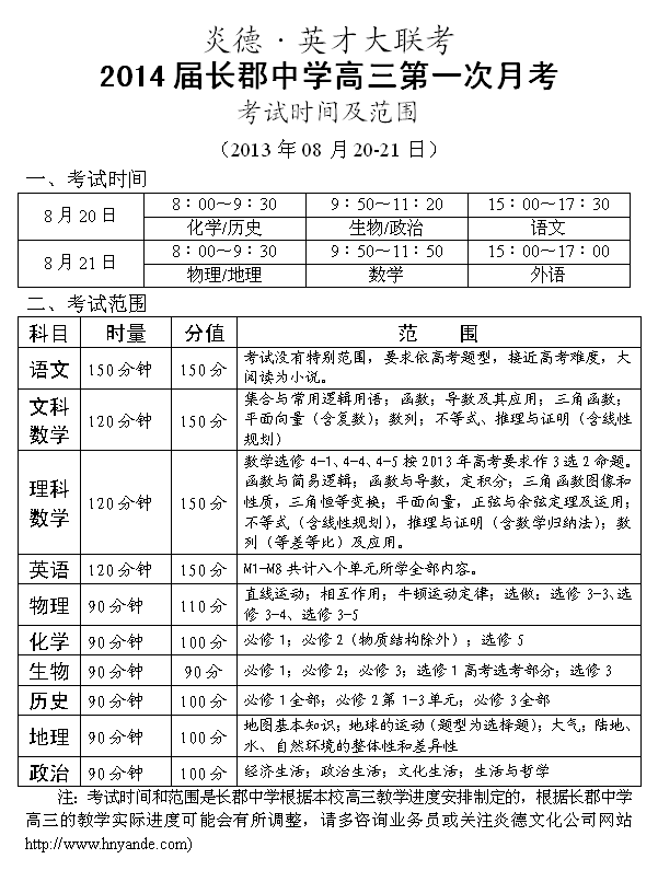 來源:炎德文化點擊:2013-08-15 14:36:00收藏本文當前位置:考試范圍 長郡中學 高三 正文