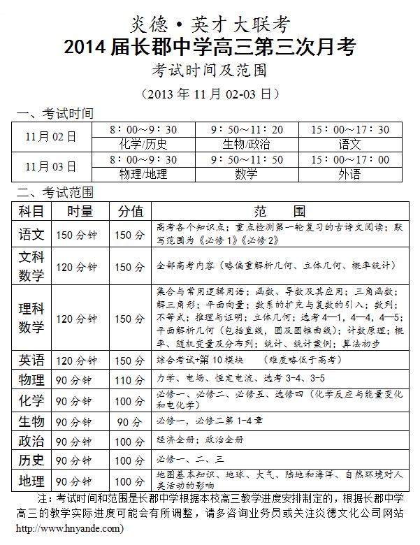 來源:炎德文化點擊:2013-10-25 14:35:30收藏本文當前位置:考試范圍 長郡中學 高三 正文