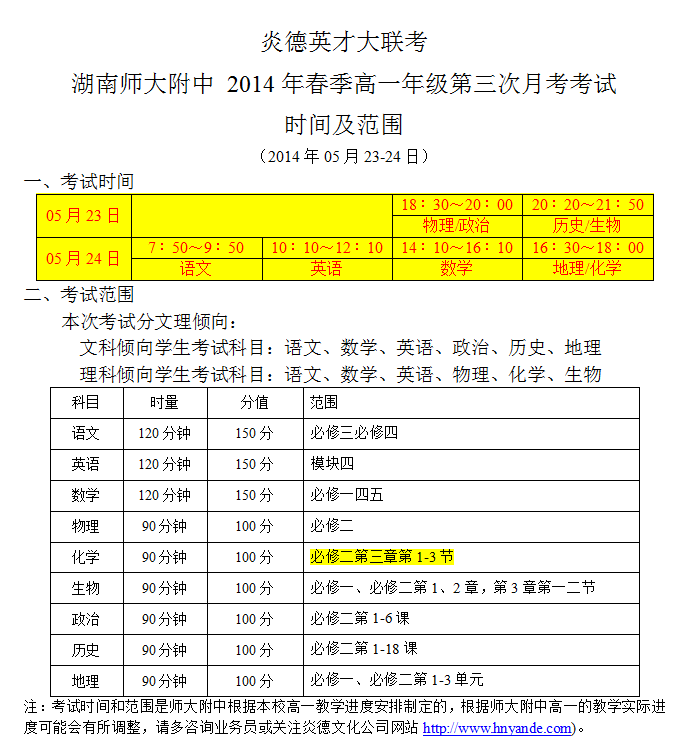 上一篇:2014年春季師大附中高一期中考試(第二次月考)考試時間及范圍(2014.04.24-25)