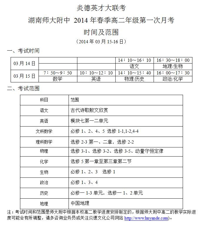 上一篇:2014年春季師大附中高二年級入學(xué)摸底考試時間及范圍(2014.02.15-16)