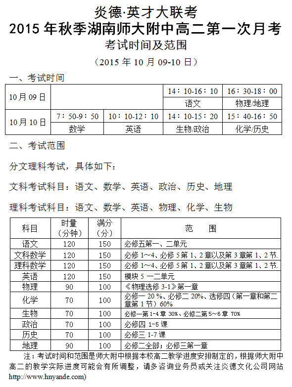 來源:點擊:2015-09-21 10:03:07收藏本文當前位置:考試范圍 師大附中 高二 正文