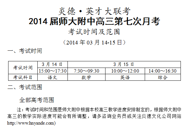下一篇:炎德英才大聯(lián)考師大附中2014屆高三第8次月考考試時間和范圍(2014.04.19-20)