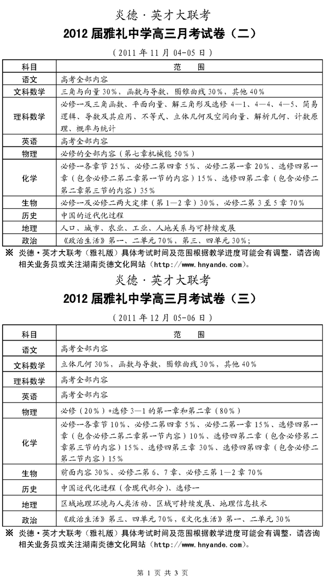 來源:本站原創(chuàng)點擊:2011-09-25 11:19:59收藏本文當前位置:考試范圍 雅禮中學(xué) 高三 正文