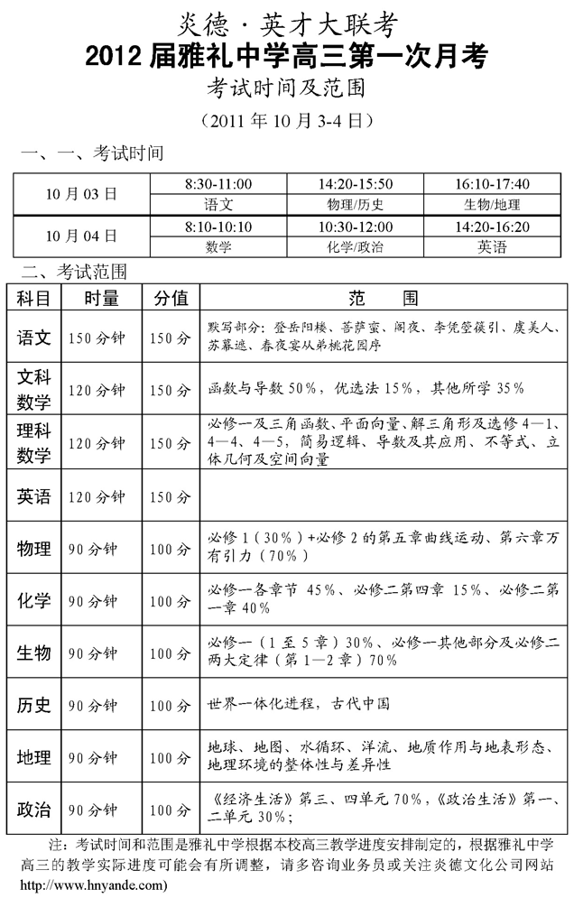 來源:本站原創(chuàng)點擊:2011-09-27 15:44:08收藏本文當前位置:考試范圍 雅禮中學 高三 正文