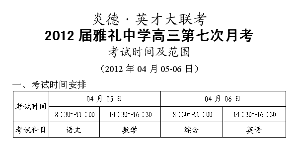 下一篇:炎德英才大聯(lián)考雅禮中學(xué)2012屆高三第一次模擬(第八次月考)考試時(shí)間和范圍