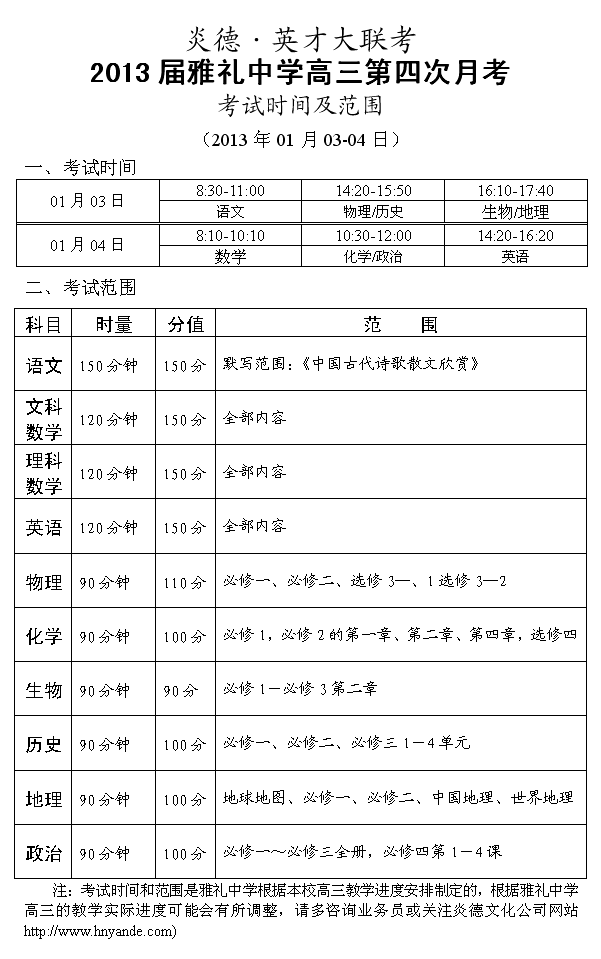 上一篇:炎德英才大聯(lián)考雅禮中學2013屆高三第三次月考考試時間和范圍