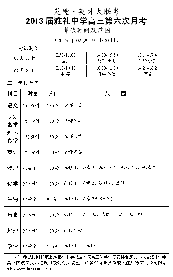 來源:炎德文化點(diǎn)擊:2013-02-19 17:31:22收藏本文當(dāng)前位置:考試范圍 雅禮中學(xué) 高三 正文
