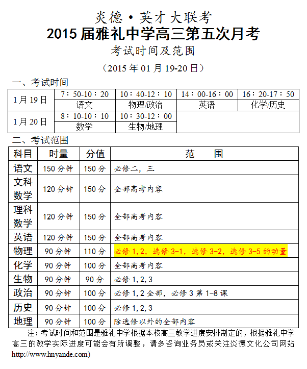 來源:炎德文化點擊:2015-01-07 10:16:40收藏本文當前位置:考試范圍 雅禮中學 高三 正文