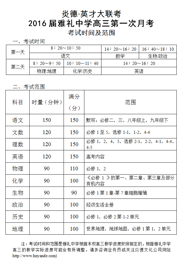 來源:炎德文化點擊:2015-09-23 12:43:30收藏本文當前位置:考試范圍 雅禮中學 高三 正文