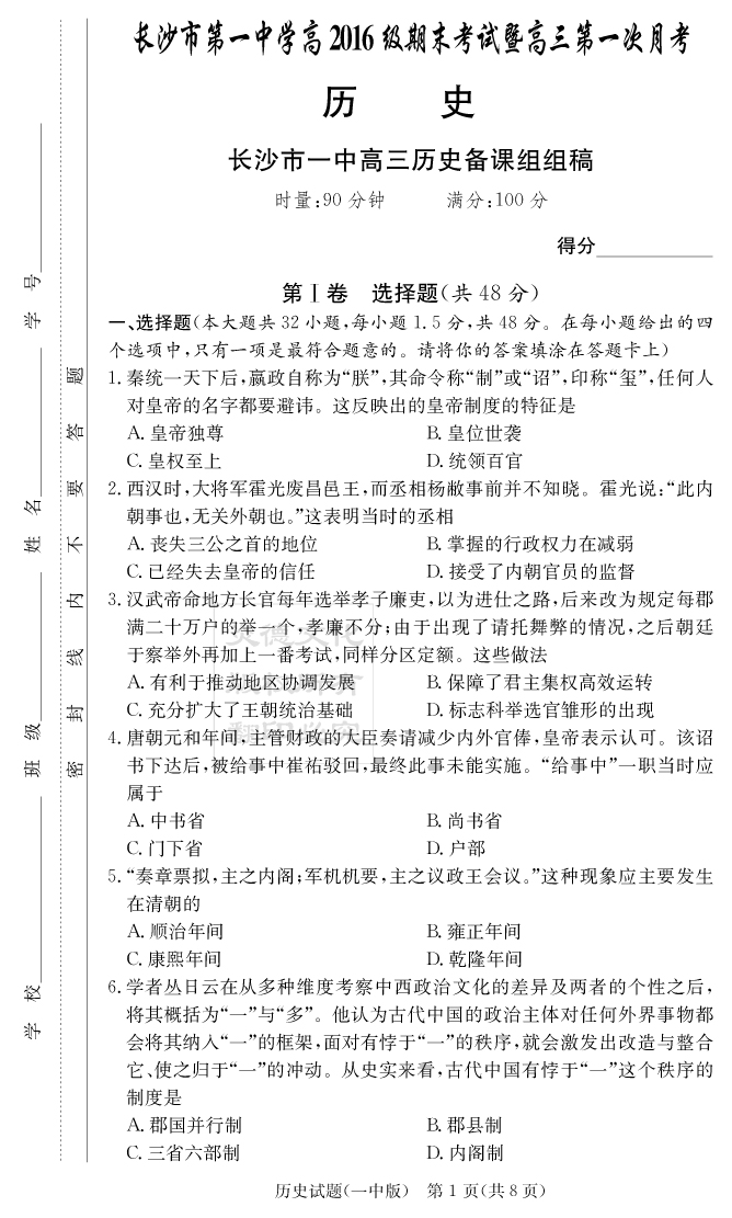 下一篇:【生物】炎德英才大聯(lián)考2019長沙一中高三1次月考