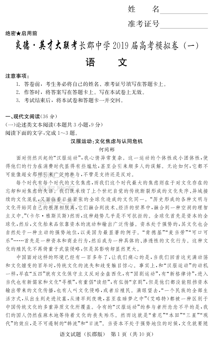 上一篇:【英語】炎德英才大聯(lián)考2019長郡中學高三9次月考(模擬一)