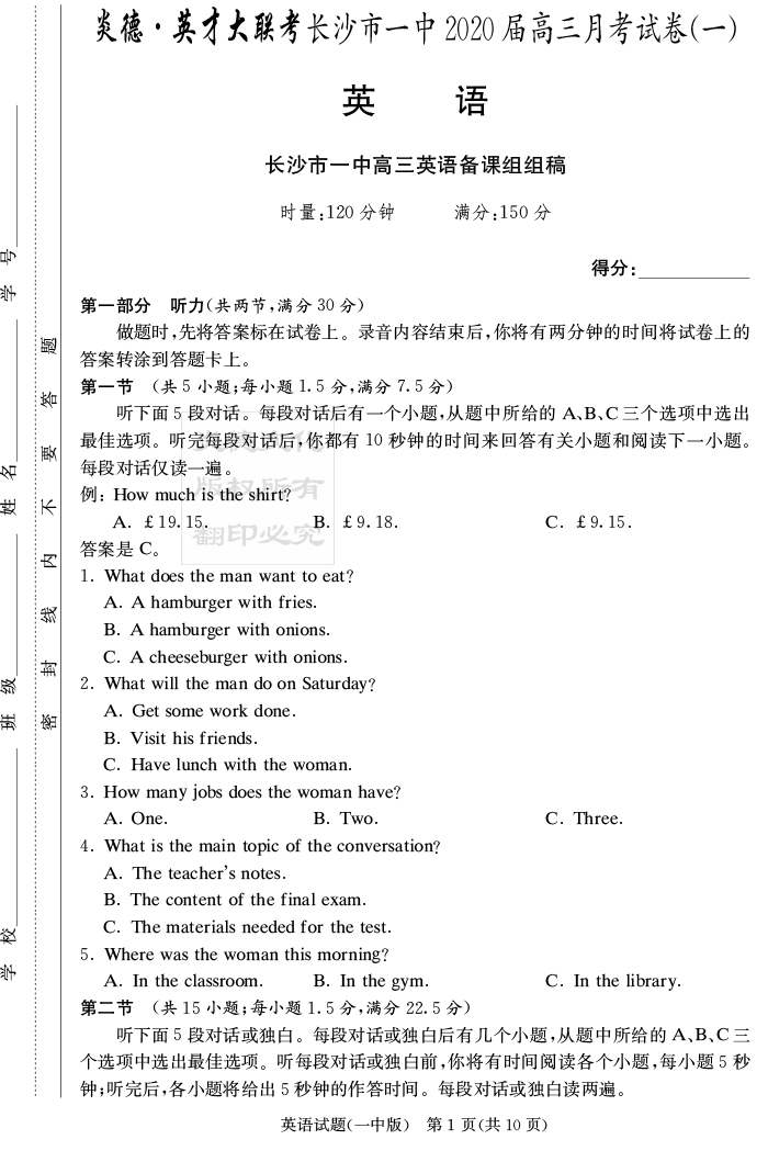 | 資源類別: | 名校月考 | |