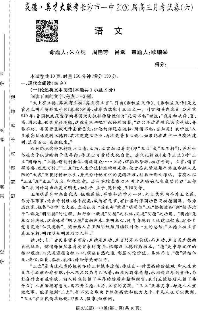 | 資源類別: | 名校月考 | |