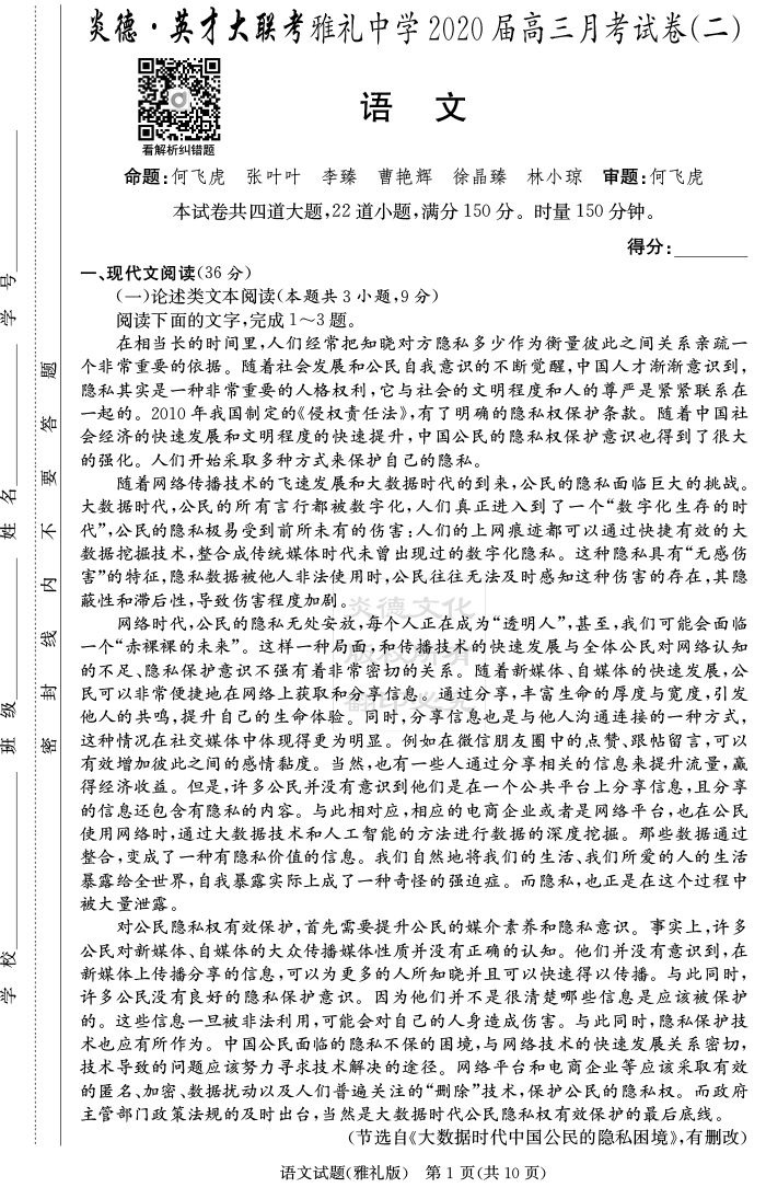 | 資源類別: | 名校月考 | |