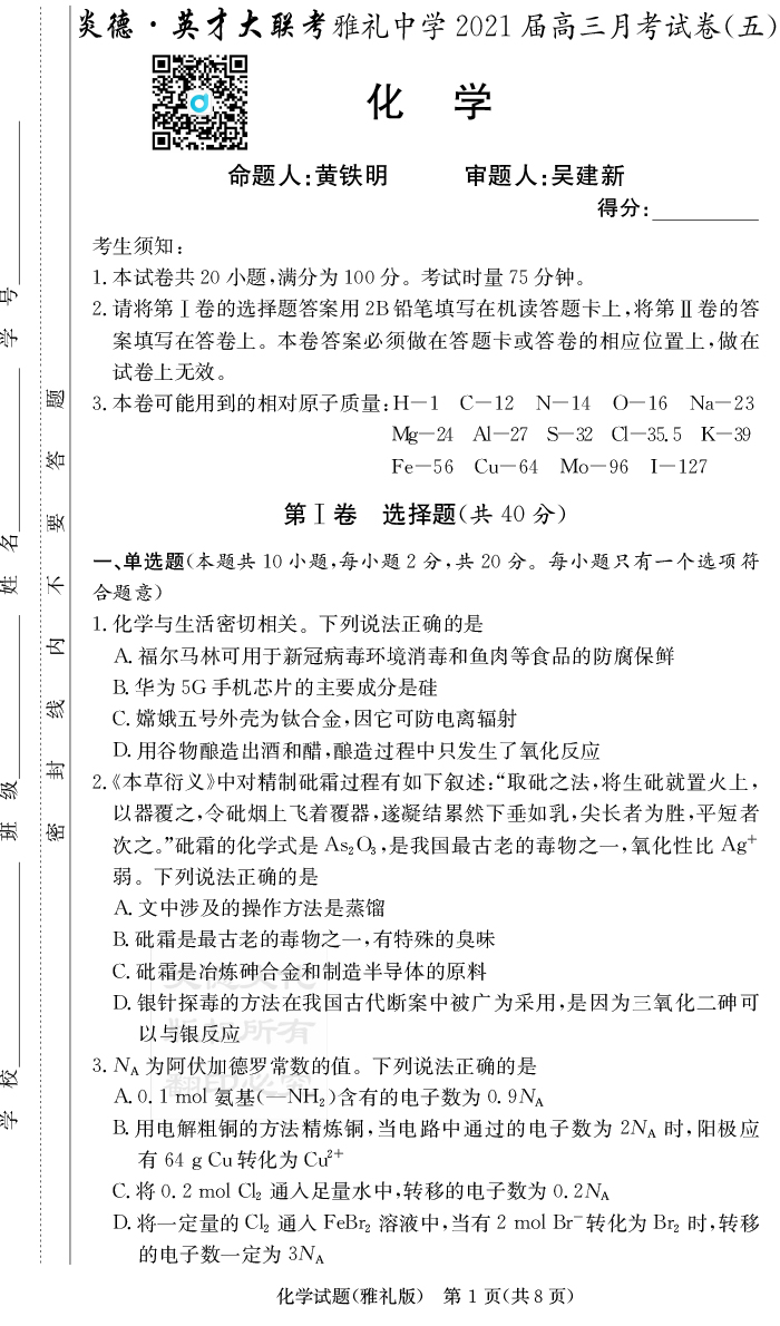 2025名師導學·名校名卷經(jīng)典試題匯編·化學