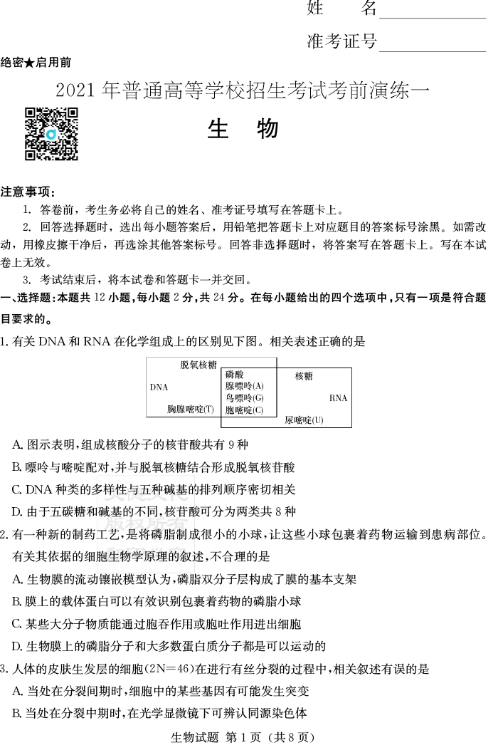 下一篇:【數(shù)學(xué)】2021年普通高等學(xué)校招生全國(guó)統(tǒng)一考試考前演練(一)