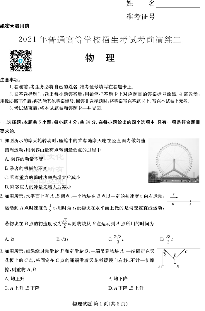 上一篇:【數(shù)學(xué)】2021年普通高等學(xué)校招生全國(guó)統(tǒng)一考試考前演練(二)