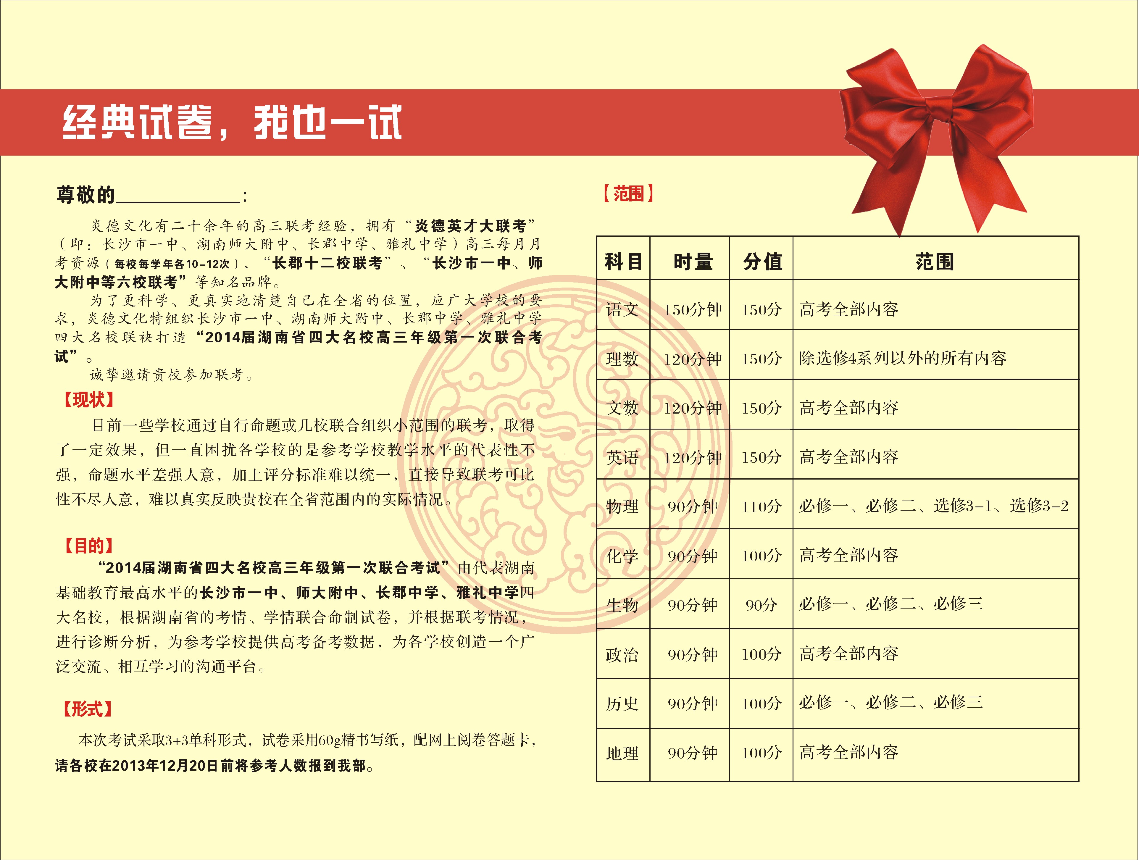 2014屆四大名校聯(lián)考邀請(qǐng)函