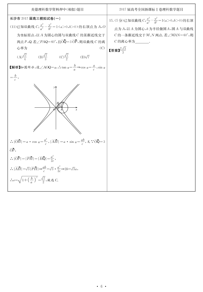 2017高考全國(guó)新課標(biāo)卷Ⅰ對(duì)分表-理數(shù)