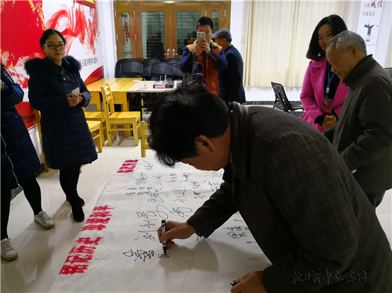 長沙市關(guān)工委主任董學(xué)生在敦促日本政府向中國人民真誠道歉簽名布上簽名