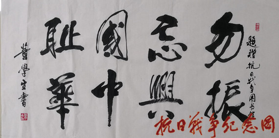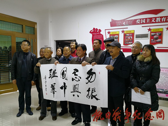 長沙市關(guān)工委主任董學(xué)生為抗日戰(zhàn)爭(zhēng)圖書館題字(前排左起:唐得之、董學(xué)生、何譽(yù)軍)
