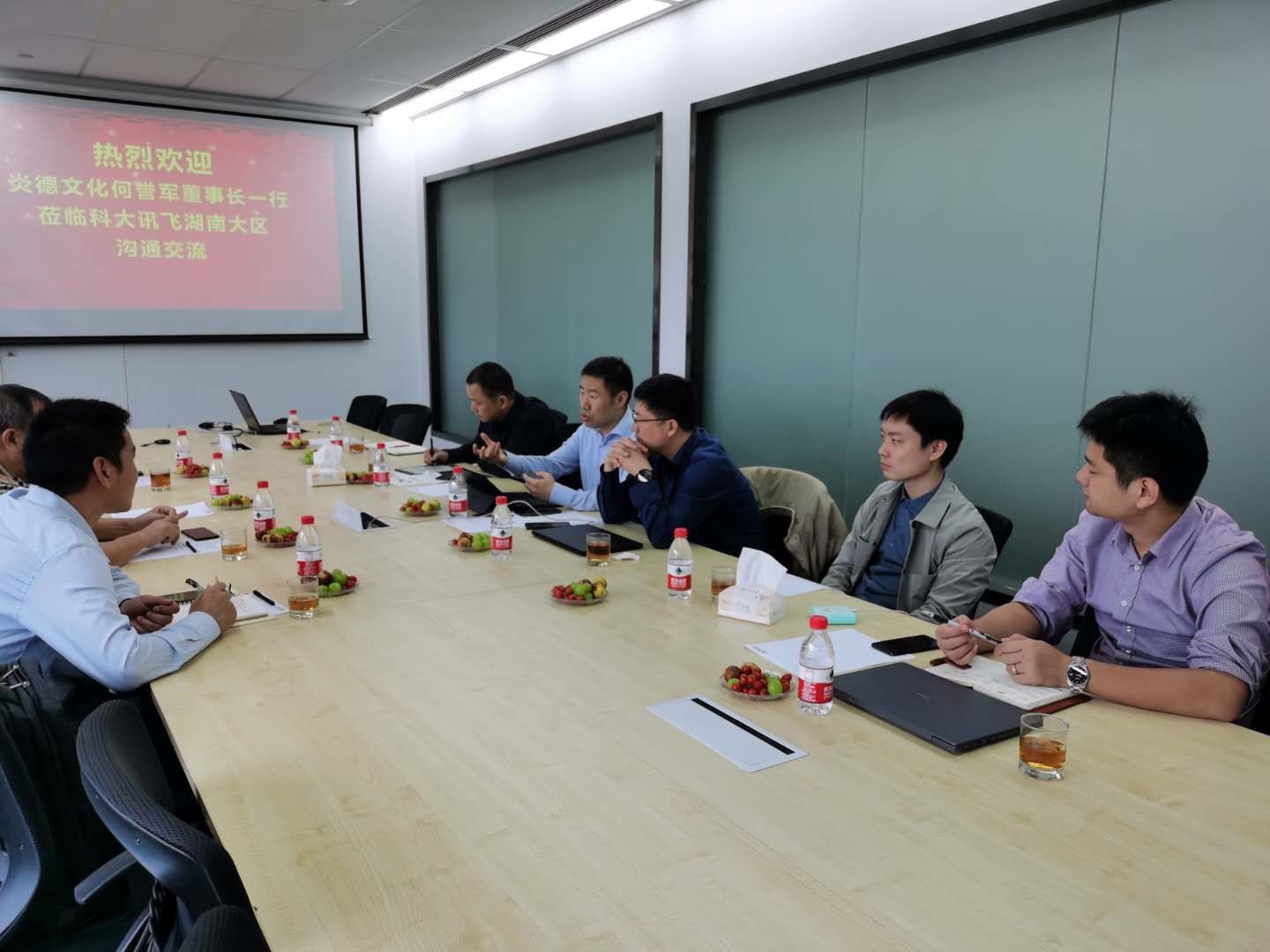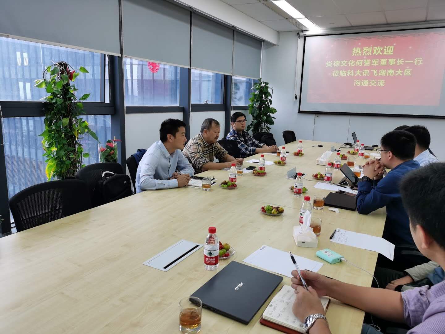 炎德文化何譽(yù)軍先生來到科大訊飛湖南分公司對(duì)雙方戰(zhàn)略合作一年來的工作和未來合作進(jìn)行了深入交流