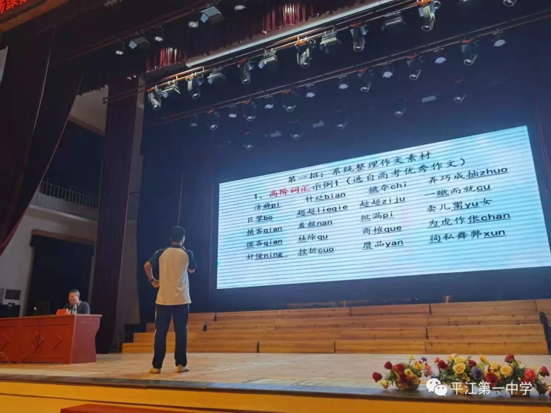 為進(jìn)一步解析2022新高考動(dòng)態(tài),把握高考新資訊,科學(xué)備考,10月4日晚,我校特邀請(qǐng)了全國(guó)語(yǔ)文名師、長(zhǎng)郡中學(xué)特聘高中語(yǔ)文研究員、清北班培訓(xùn)專家、湖南省高考評(píng)卷專家馬繼德老師蒞臨平江一中進(jìn)行專題講座。學(xué)校黨委委員、校長(zhǎng)助理、教導(dǎo)處主任單五柱老師、教研室主任許衛(wèi)兵老師、高三語(yǔ)文教師、班主任及全體高三學(xué)生參加了講座。