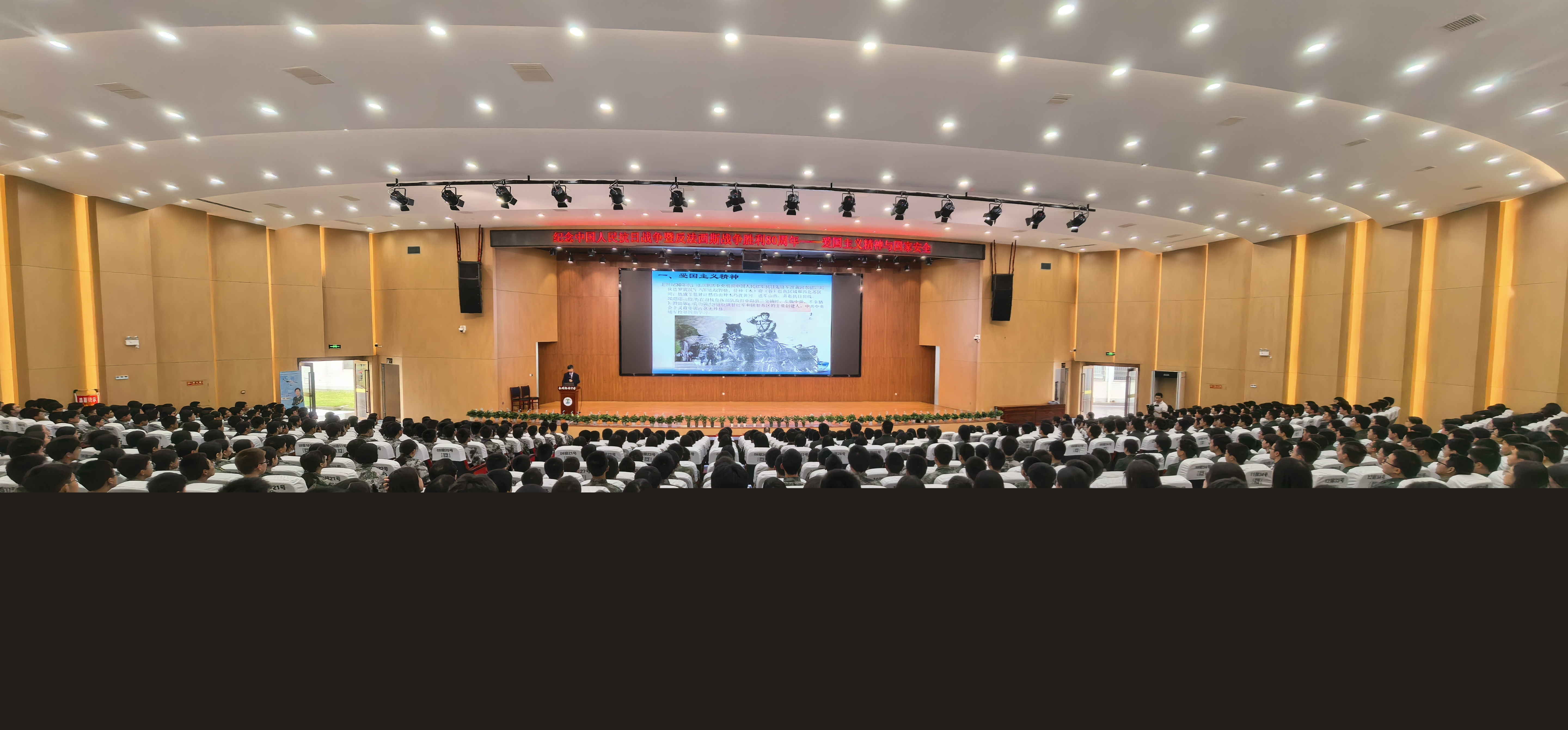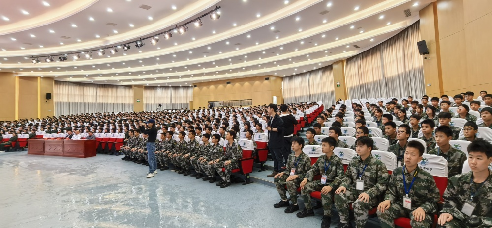 上午十點(diǎn),講座在陶鑄中學(xué)大禮堂準(zhǔn)時(shí)開始,由學(xué)校黨委書記鄧振主持,800 余位學(xué)生現(xiàn)場聆聽了此次愛國主義教育講座。國防班的同學(xué)進(jìn)行了訓(xùn)練表演。