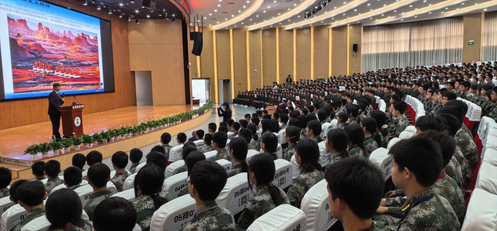 講座中,姜春良少將深入解讀了習(xí)近平總書記關(guān)于總體國家安全觀的重要論述,從政治、國土、軍事等 20 個(gè)方面,全面分析了當(dāng)前我國國家安全面臨的形勢與挑戰(zhàn),并系統(tǒng)闡述了習(xí)近平強(qiáng)軍思想。報(bào)告主題鮮明、主線清晰、重點(diǎn)突出、論述深刻、數(shù)據(jù)詳實(shí)、案例豐富,兼具政治高度與實(shí)踐深度,極大地激發(fā)了學(xué)生們對(duì)祖國的熱愛之情。在國防教育方面,姜春良少將著重強(qiáng)調(diào)了國家安全意識(shí)和國防觀念的重要性。他提醒學(xué)生們,作為中華兒女,應(yīng)時(shí)刻保持警惕,增強(qiáng)自身的國家安全意識(shí),為國家的安寧穩(wěn)定貢獻(xiàn)力量。同時(shí),他還向?qū)W生們介紹了我國軍隊(duì)的發(fā)展歷程和輝煌成就,讓學(xué)生們深刻認(rèn)識(shí)到國防力量對(duì)于國家繁榮和人民安全的重要意義。